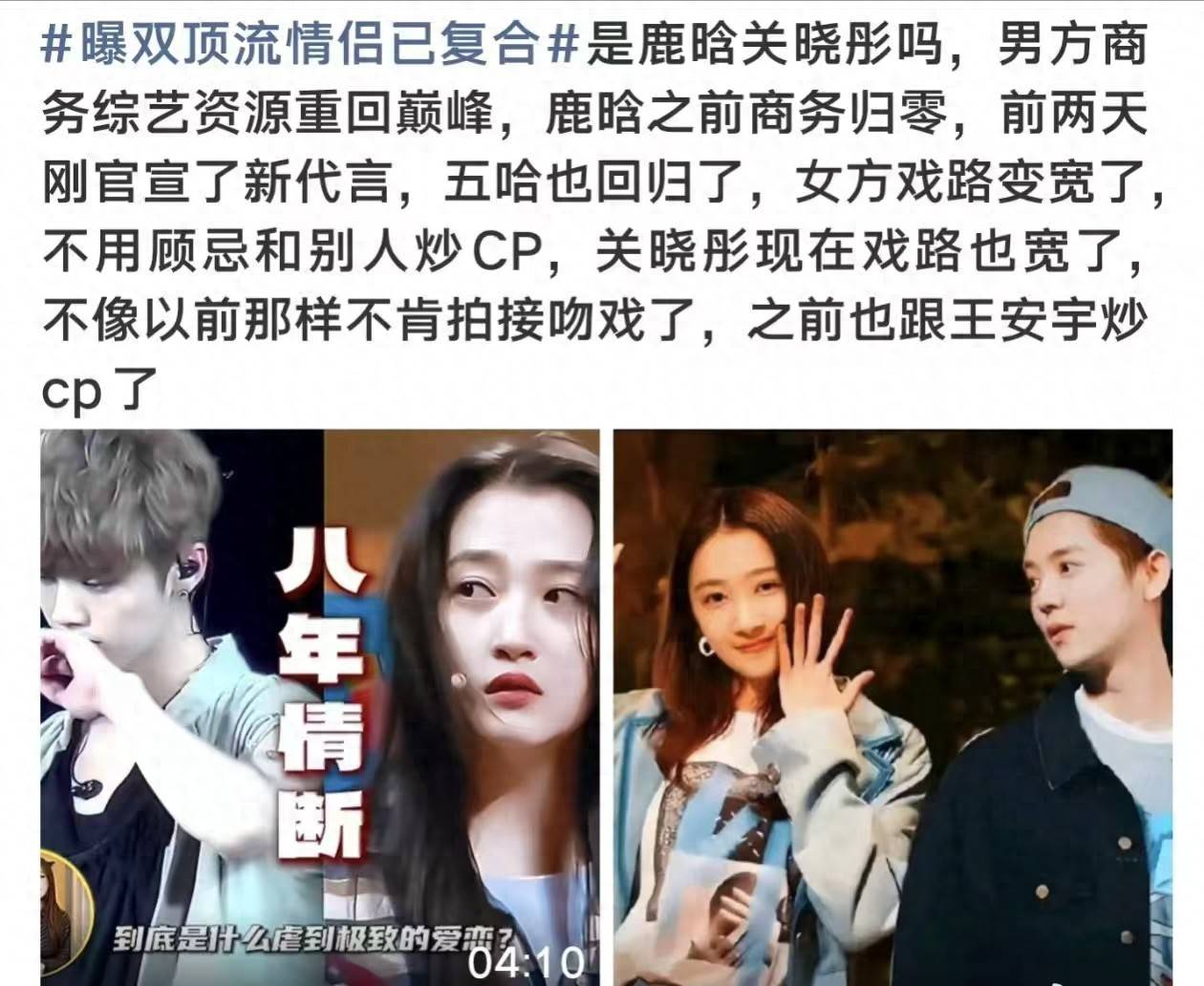 娱乐圈的感情故事,总是隔三差五就要被翻出来“重播”一次。最近几天,关于鹿晗和关晓彤复合的消息突然在网上炸开了锅。