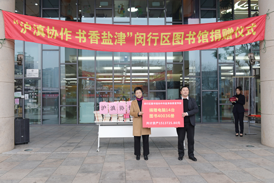 12月24日下午,“沪滇协作 书香盐津”捐赠仪式在闵行区图书馆举行。